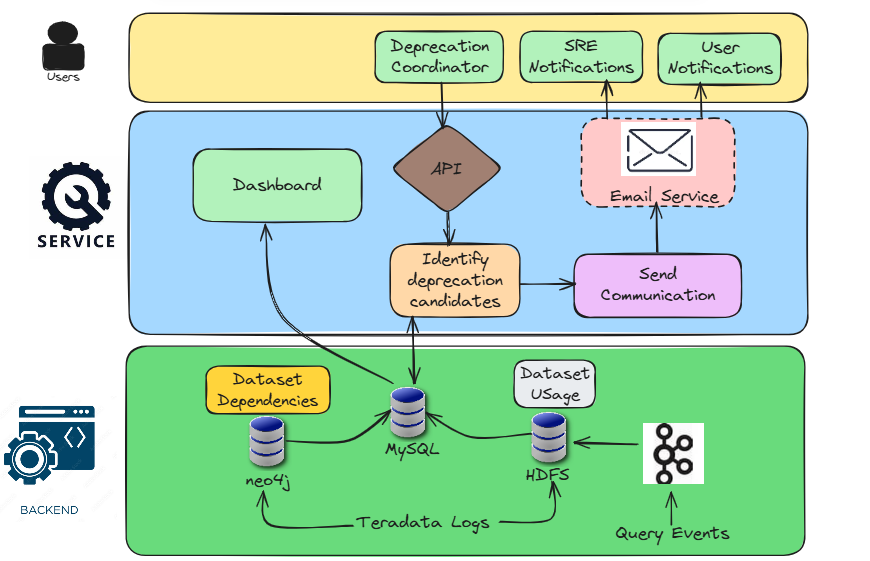 However, there were no existing tools that supported LinkedIn’s complex environment of Teradata (TD), Hadoop, and other systems. While DataHub was building lineage tools, they wouldn’t be ready in time. So, LinkedIn developed its own solutions: