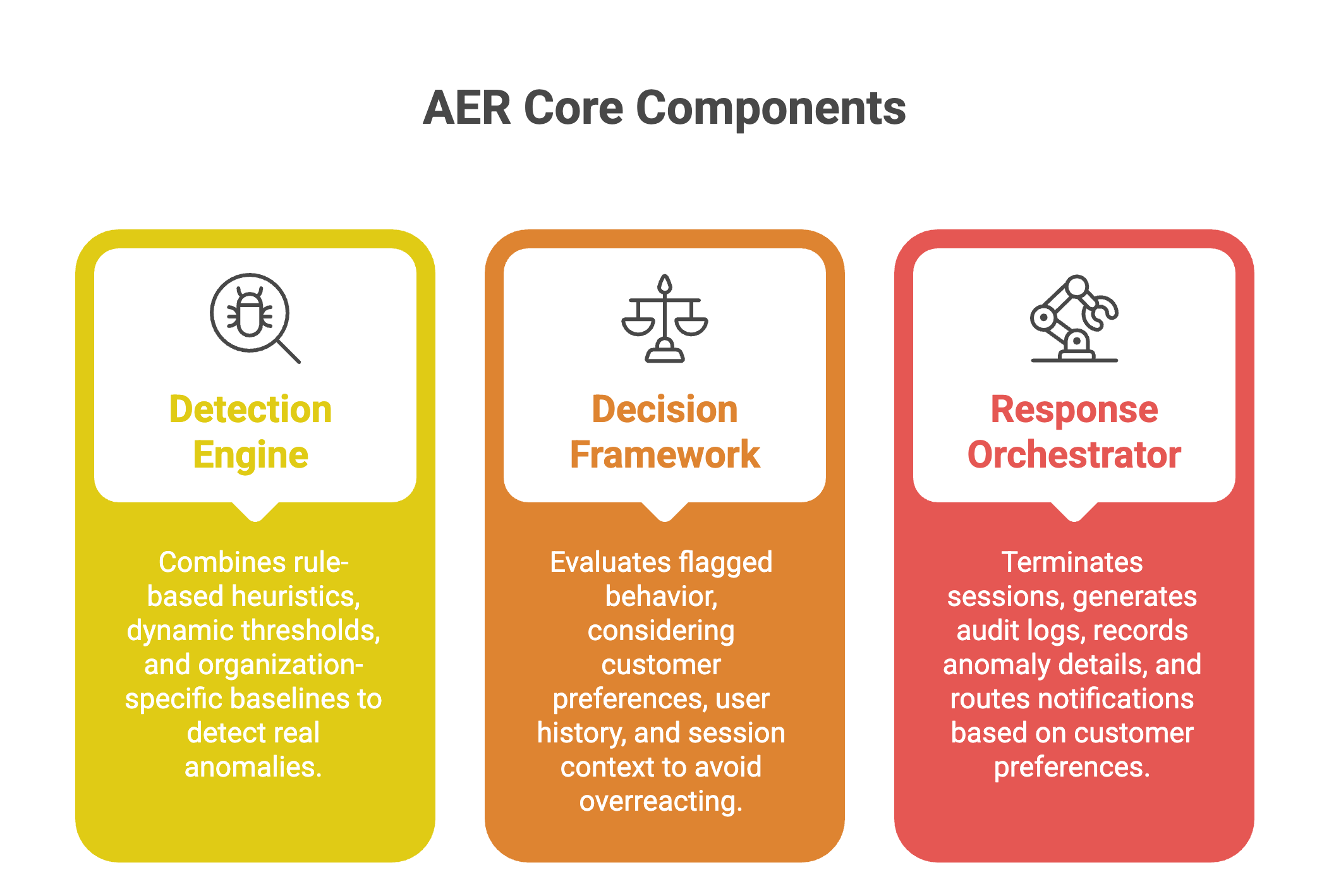 Detection alone isn’t enough. Once suspicious behavior is flagged, the decision framework evaluates it before acting. It checks: