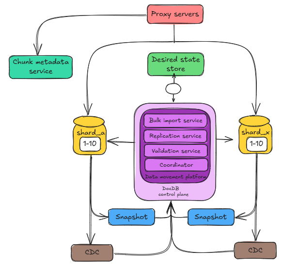 To handle Stripe’s massive data needs, they created the Data Movement Platform- DocDB. They wanted a solution that gave them complete operational control, so that they could move the individual chunks of data between shards. Additionally, this needed to be done with minimal downtime and strong data consistency since Stripe is dealing with financial data.