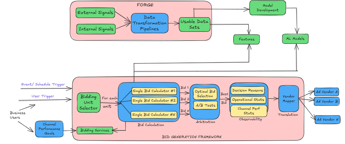 In the beginning, there was no unified system for managing ad bids. When an engineer wanted to test a new method for placing ad bids, they would have to re-implement several parts of the system.