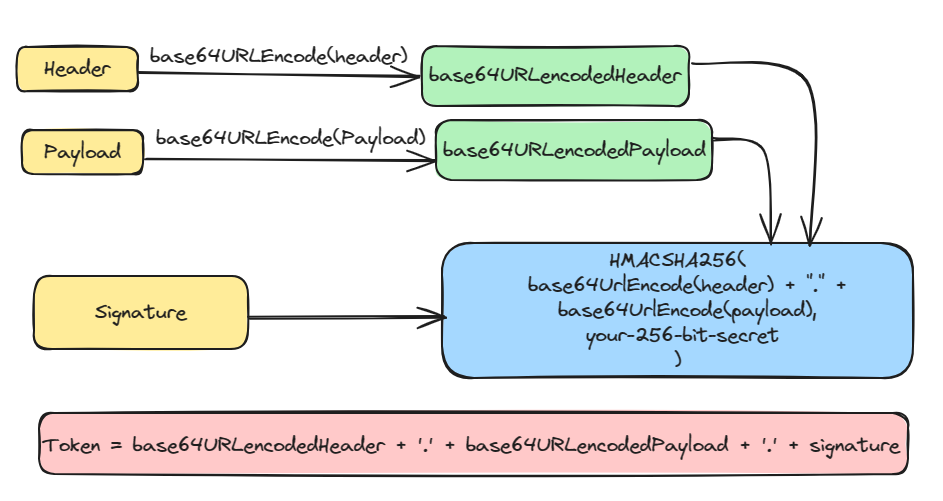 This signature is then appended to the header and payload using dot(.) which forms our actual token header.payload.signature