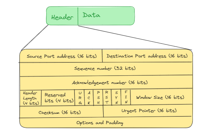 The UDP header is typically 8 bytes (64 bits) in size and consists of the following fields: